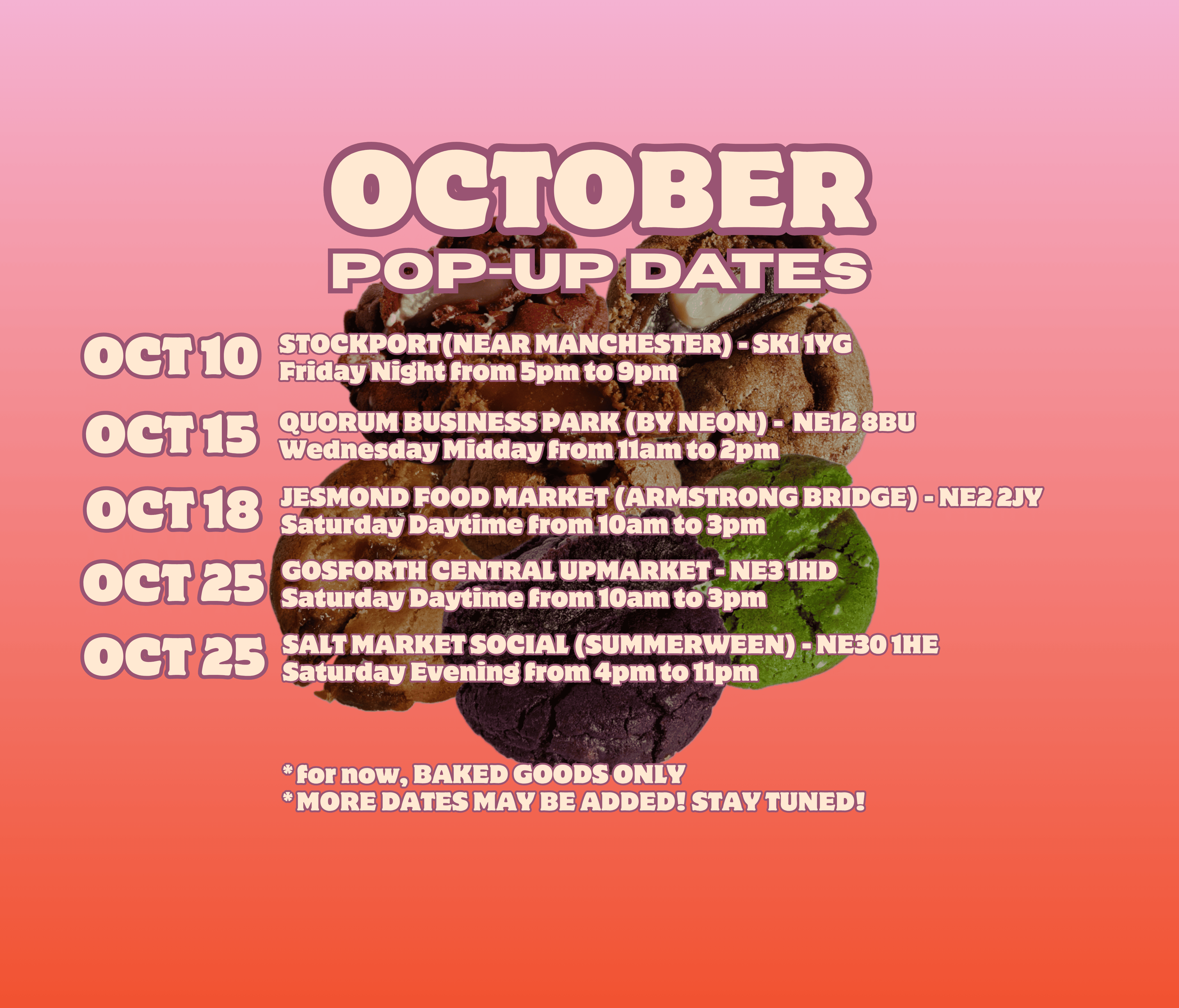 Our next pop up is in Stockport near Manchester on October 10th with our BAKED GOODS ONLY from 5pm to 9pm at St. Mary's Church (Postcode: SK1 1YG).